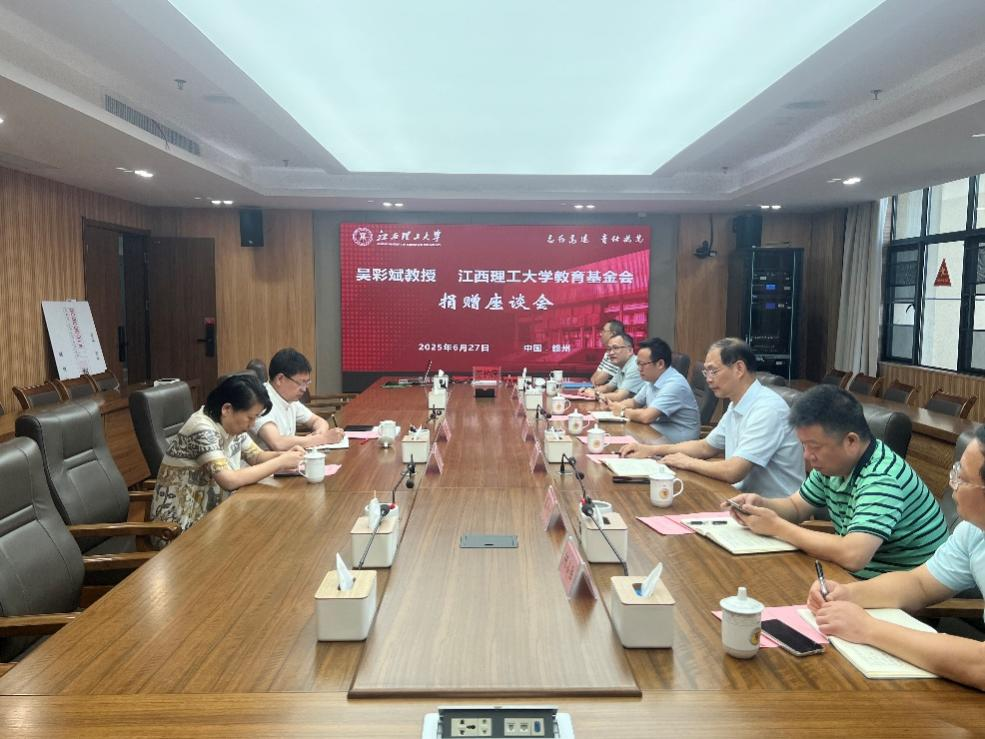 本网讯 6月27日,完美网页版在三江校区濂溪楼1号会议室举行吴彩斌教授捐赠座谈会。校党委书记杨斌,党委常委、副校长廖春发及相关部门负责人参加座谈。座谈会由校国内合作促进中心主任、教育基金会副理事长兼秘书长许洪胤主持。