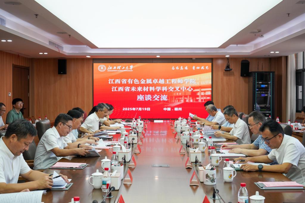 揭牌仪式后,与会人员进行了研讨交流,审议了江西省有色金属卓越工程师学院与江西省未来材料学科交叉中心的建设方案,并商讨了学科交叉中心主攻研究方向。