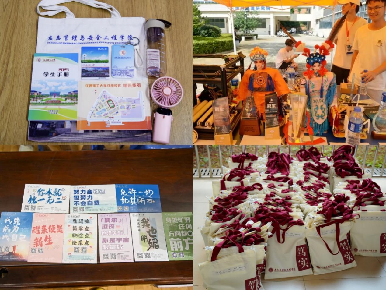各学院充分发挥学科特色,策划组织了系列主题鲜明、内涵丰富的迎新活动。法学院通过“悦读启航”读书表彰及《习近平法治思想研习簿》发放,强化学生专业认同与文化积淀;外国语学院开展多语言识别挑战,凸显学科魅力;应急管理与安全工程学院以“Campus Walk”闯关活动促进新生快速融入江理的学习与生活;经济管理学院制作涵盖学习生活指南的新生手册,体现人文关怀;建筑与设计学院给新生准备了定制蓝色POLO衫;信息工程学院在学院报到点为新生准备赣南特产,体验赣南美食文化……