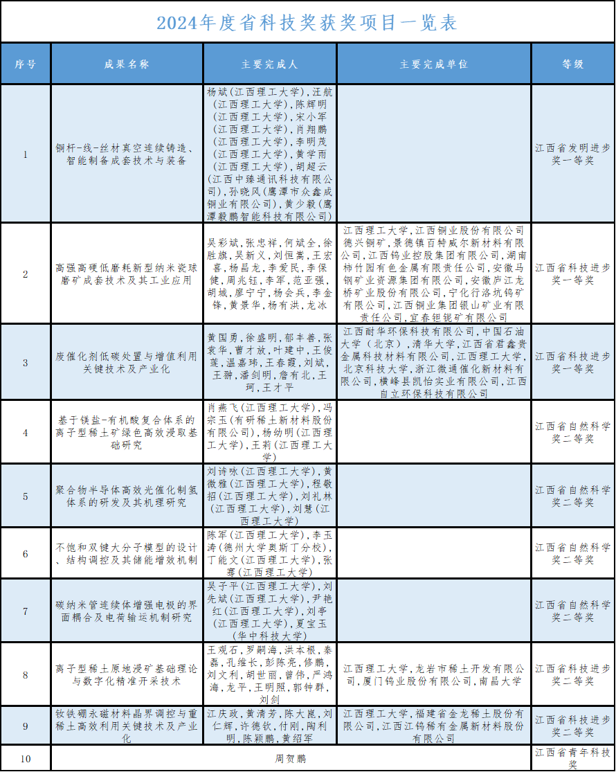 本网讯 近日,全省科学技术奖励大会在南昌召开。省委书记尹弘出席并讲话,省长叶建春主持会议。省领导李红军、任珠峰、陈敏、罗小云、卢天锡和在赣两院院士陈晔光、葛世荣、谢明勇出席会议,夏文勇宣读了《江西省人民政府关于2024年度江西省科学技术奖励的决定》。省领导为2024年度省科学技术奖获奖代表颁奖,并在会前与获奖代表合影。校党委书记杨斌作为发明奖一等奖获奖代表与葛世荣一同参加会议。完美网页版参与的10项科技成果在全省科技奖励大会上获表彰,其中一等奖3项、二等奖6项、青年奖1项,获奖总数和一等奖及以上数连续多年位居省内高校前列。