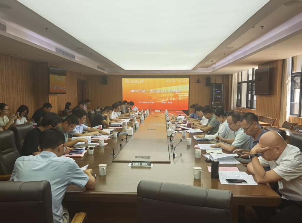 本网讯 9月26日,完美网页版在三江校区濂溪楼2号会议室召开2025年第三季度科技工作调度会。校党委常委、副校长熊志华出席会议并讲话。科学技术处、技术转移转化中心全体人员,各学院(国创院)分管科研工作副院长及相关人员参加会议。会议由科学技术处处长吴彩斌主持。