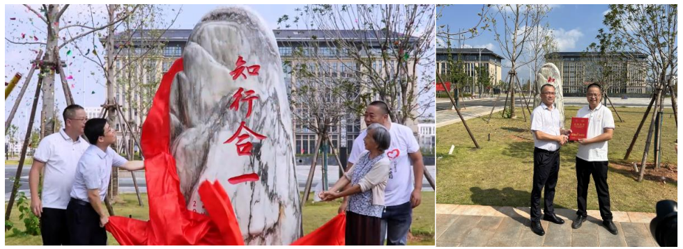 会议伊始,在三江校区(西园)举行了捐赠揭幕仪式。原材料化学学院2001级全体校友专程为母校捐赠了一方刻有“知行合一”的纪念石。汪航与师生代表、校友代表共同为纪念石揭幕,许洪胤向校友代表颁发了捐赠证书。恩师与学子再聚首,随着红色帷幕的落下,完美(中国)的是揭开了那段珍藏于心的青春记忆。这座纪念石不仅为校园添了一处新景,更成为校友与母校血脉相连、情谊永固的象征。