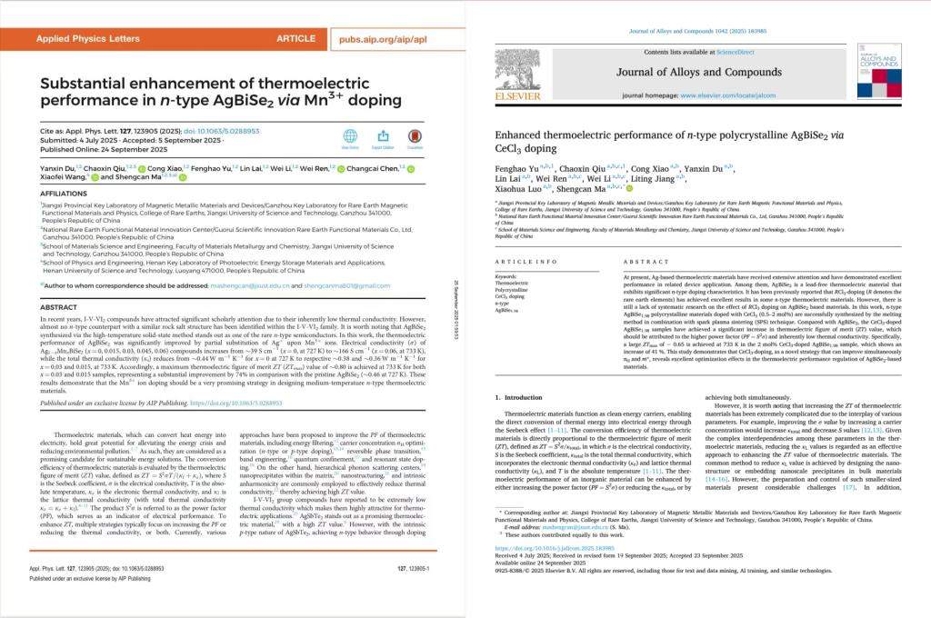 金秋时节,稀土学院传来喜讯。在国家级高层次人才、校“模范教师”马胜灿教授的精心指导下,2022级创新试验班本科生于峰浩、杜琰鑫两位同学在科研领域取得重大突破,分别以第一作者在国际权威期刊《Journal of Alloys and Compounds》(IF=6.2,中科院二区)和《Applied Physics Letters》(IF=3.6)上发表高水平研究论文。这一成绩的取得,不仅彰显了学校在本科生科研创新能力培养方面的显著成效,更是稀土学院特色育人模式的成功实践。