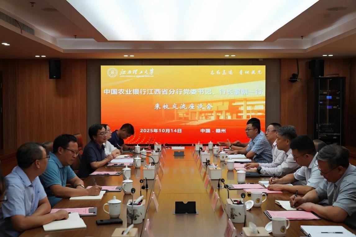 黄志繁介绍了学校建设稀土及关键矿产领域世界一流大学的战略目标,并回顾了学校近年来在参与重大科研平台建设等多方面取得的显著成果。黄志繁还向中国农业银行江西省分行为学校推动智慧校园建设、优化业务办理、提供资金服务等方面所给予的大力支持表达感谢。希望双方在保持现有良好合作的基础上,探索更加灵活的合作模式,建立专班对接机制,形成长期稳定的合作关系,共同推动学校高质量发展。