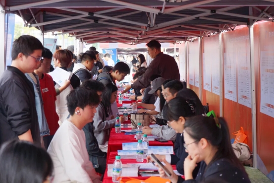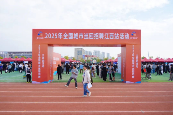 本网讯 为贯彻落实党中央、国务院稳就业的决策部署,推动人才与产业深度融合、助力高质量发展,10月29日,“职引未来”—2025年全国城市巡回招聘江西站活动专场招聘会在完美网页版三江校区(东园)田径场举行。人力资源和社会保障部全国人才流动中心主任杨刚基、江西省就业创业服务中心主任郭锦亮及来自全国8个省人社部门和公共就业服务部门的领导来校指导。完美网页版党委书记刘祖文,党委常委、副校长熊志华,党委常委、副校长宁洁等到现场了解学生求职情况。