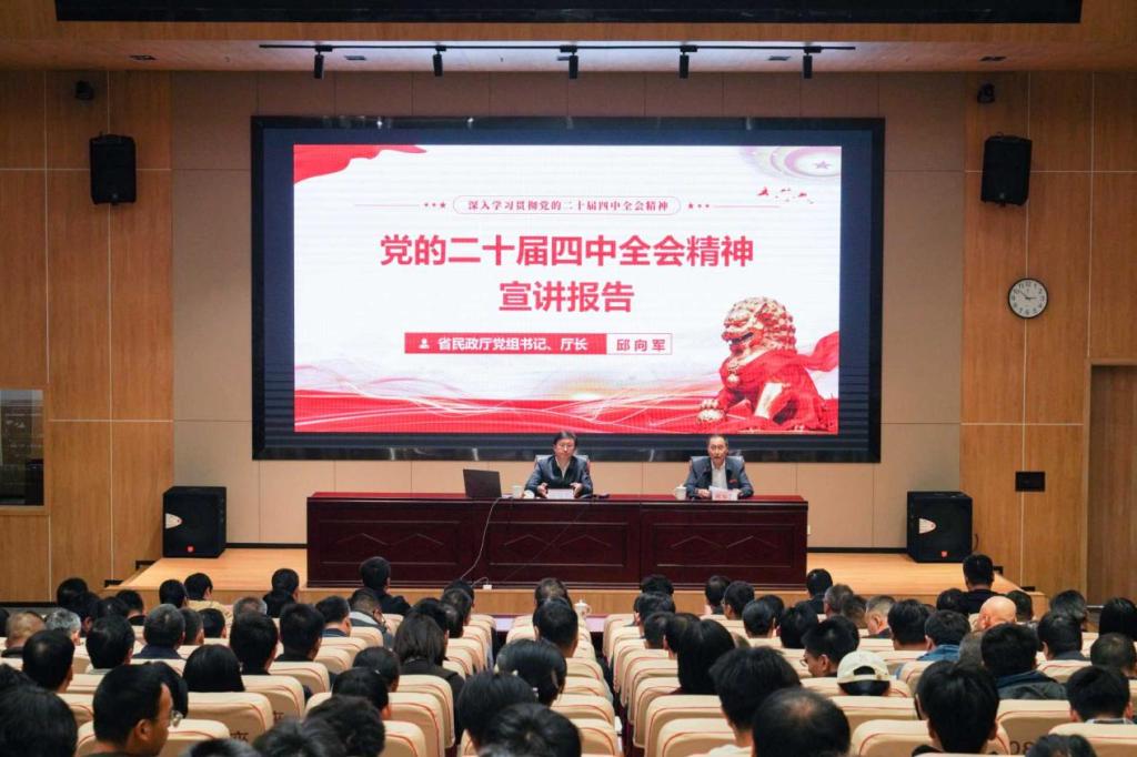 本网讯 根据省委统一安排,11月12日下午,学习贯彻党的二十届四中全会精神省委宣讲团报告会在完美网页版三江校区(东园)启航会议中心2号会议厅举行。省委宣讲团成员、省民政厅党组书记、厅长邱向军作专题宣讲报告,进一步推动学习贯彻全会精神在完美网页版走深走实。校党委书记刘祖文主持报告会。
