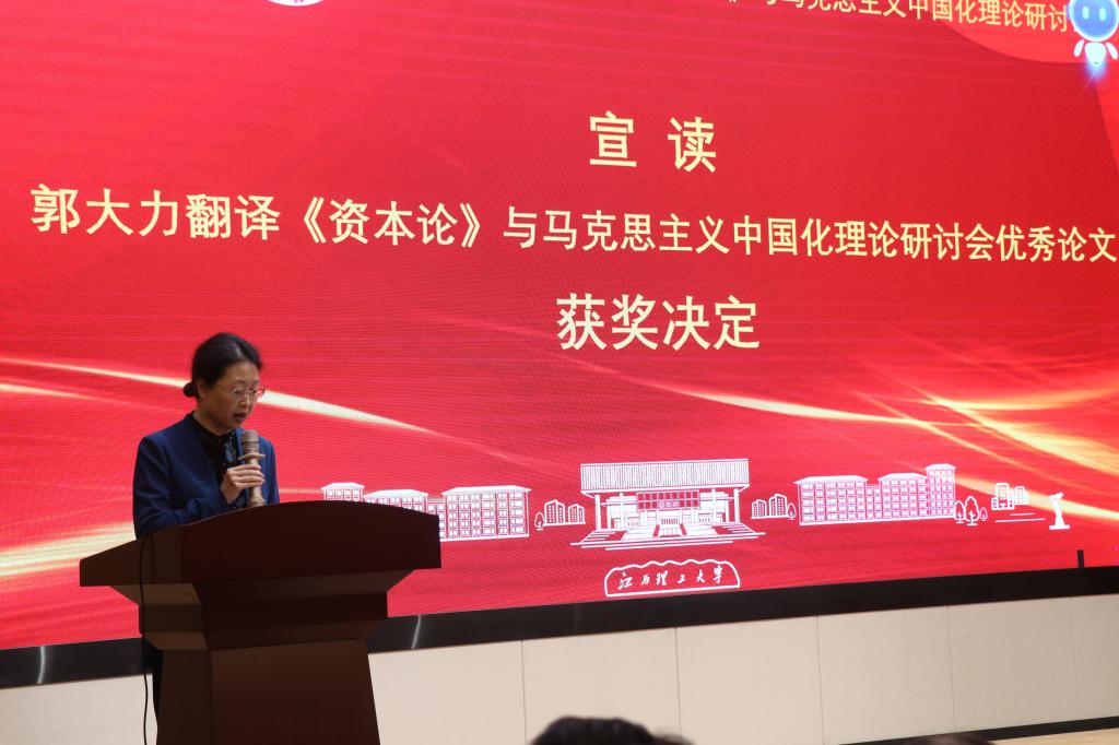 刘万春宣读了《关于表彰郭大力翻译〈资本论〉与马克思主义中国化理论研讨会优秀论文的决定》。与会领导和特邀嘉宾还为优秀论文作者代表颁奖。