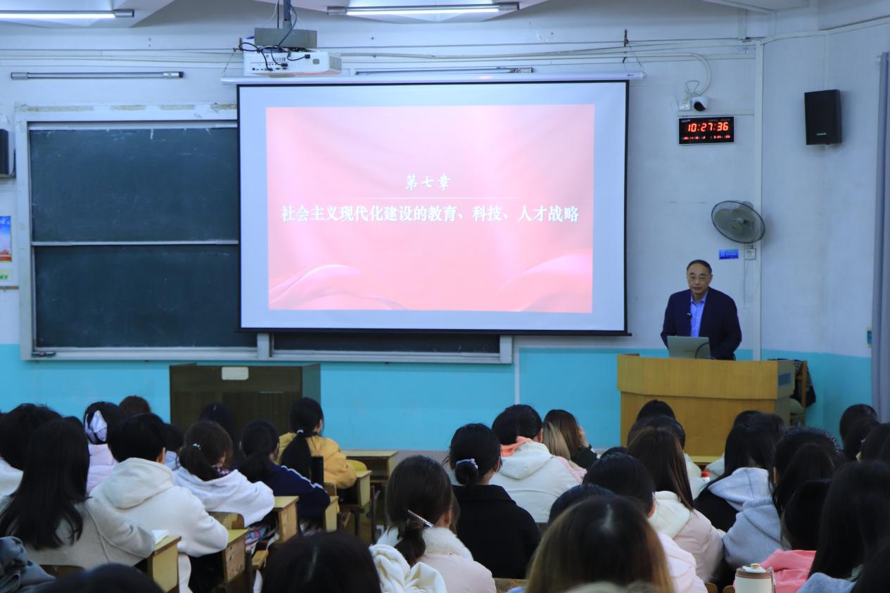 本网讯 在全校上下深入学习贯彻党的二十届四中全会精神、全面创建稀土及关键矿产领域世界一流大学之际,11月18日,中国工程院院士、校长葛世荣在红旗校区为学生讲授《习近平新时代中国特色社会主义思想概论》课。马克思主义学院相关师生现场听讲。