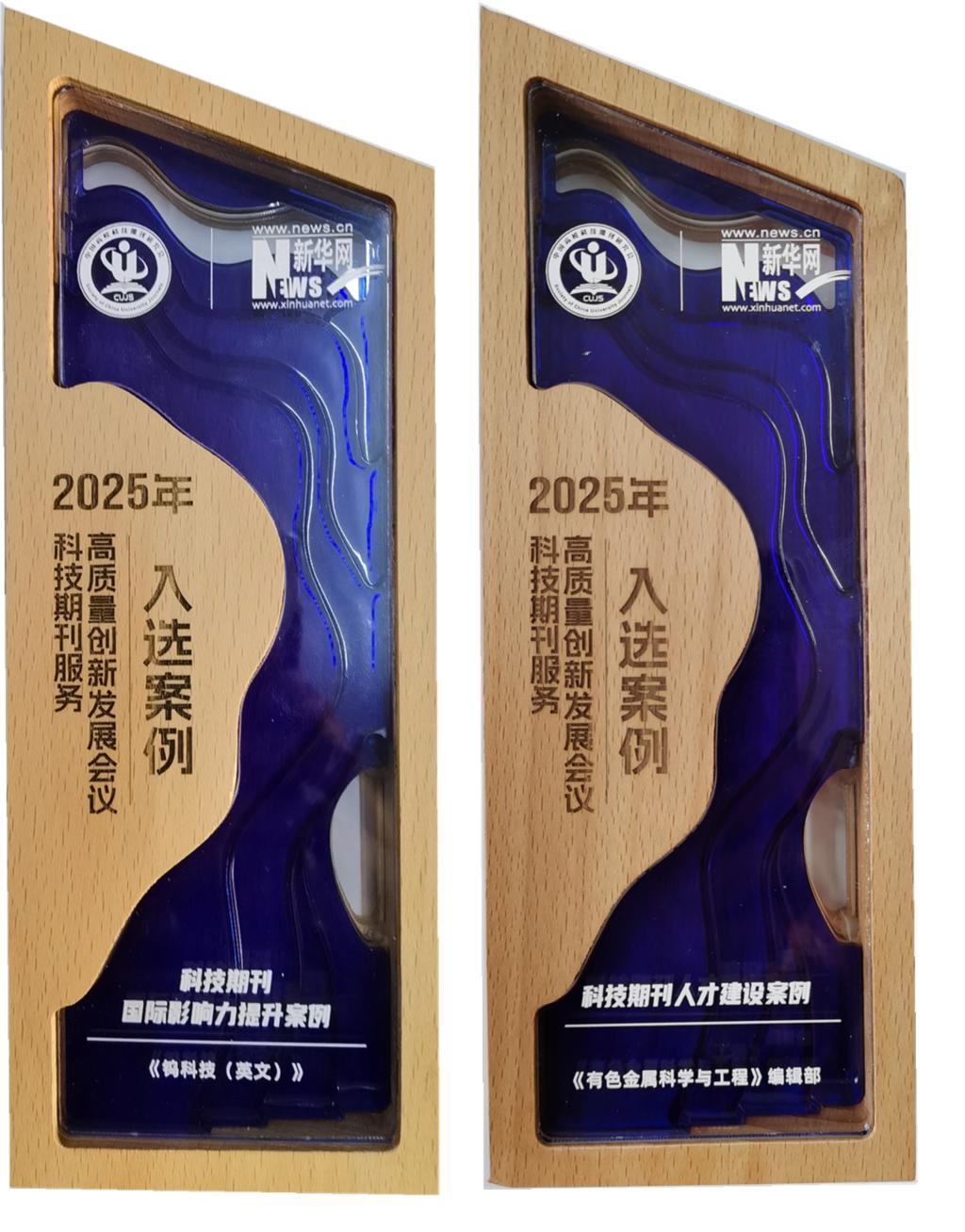 本网讯 近日,由中国高校科技期刊研究会主办,《新华网》提供媒体支持的2025年科技期刊服务高质量创新发展会议在北京举办,会上发布了“2025科技期刊服务高质量创新发展案例征集活动”入选名单,《有色金属科学与工程》入选“科技期刊人才建设案例”,《钨科技(英文)》双双入选“科技期刊国际影响力提升案例”。