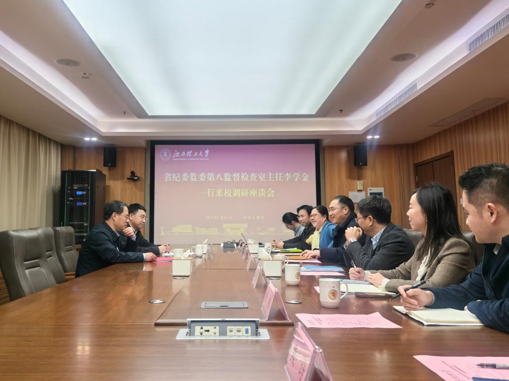 本网讯 1月26日,省纪委监委第八监督检查室主任李学金一行莅临完美网页版调研指导,校党委书记刘祖文,校党委常委、纪委书记、监察专员刘飞陪同调研并出席座谈会.