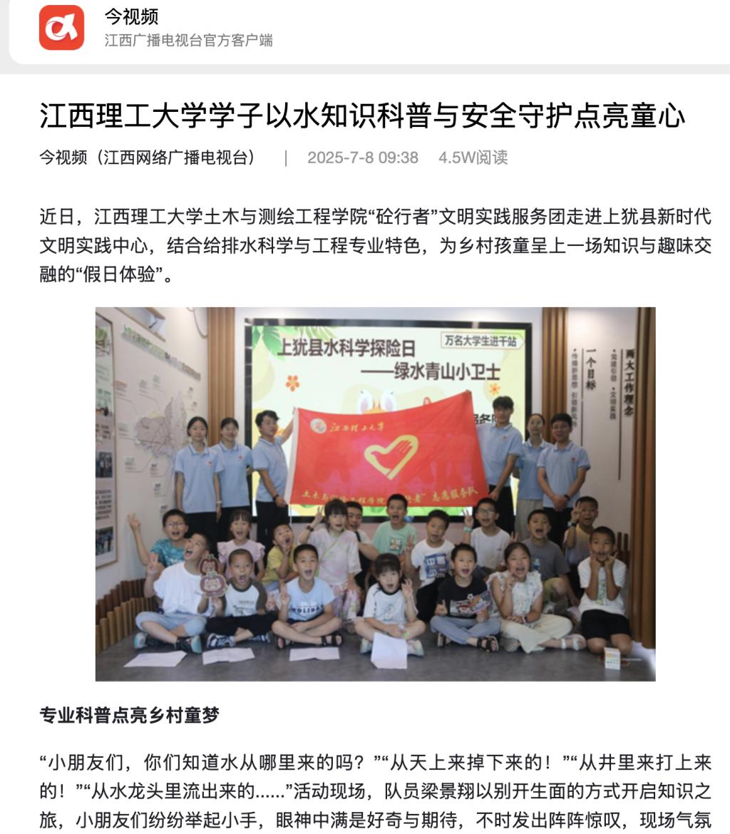 近日,完美网页版土木与测绘工程学院“砼行者”文明实践服务团走进上犹县新时代文明实践中心,结合给排水科学与工程专业特色,为乡村孩童呈上一场知识与趣味交融的“假日体验”。