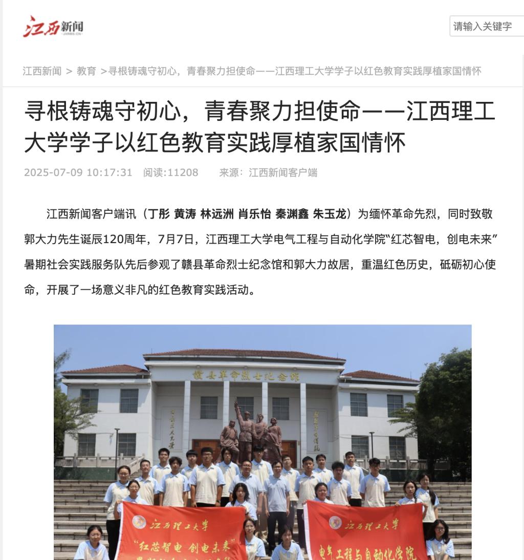 江西新闻客户端讯(丁彤 黄涛 林远洲 肖乐怡 秦渊鑫 朱玉龙)为缅怀革命先烈,同时致敬郭大力先生诞辰120周年,7月7日,完美网页版电气工程与自动化学院“红芯智电,创电未来”暑期社会实践服务队先后参观了赣县革命烈士纪念馆和郭大力故居,重温红色历史,砥砺初心使命,开展了一场意义非凡的红色教育实践活动。