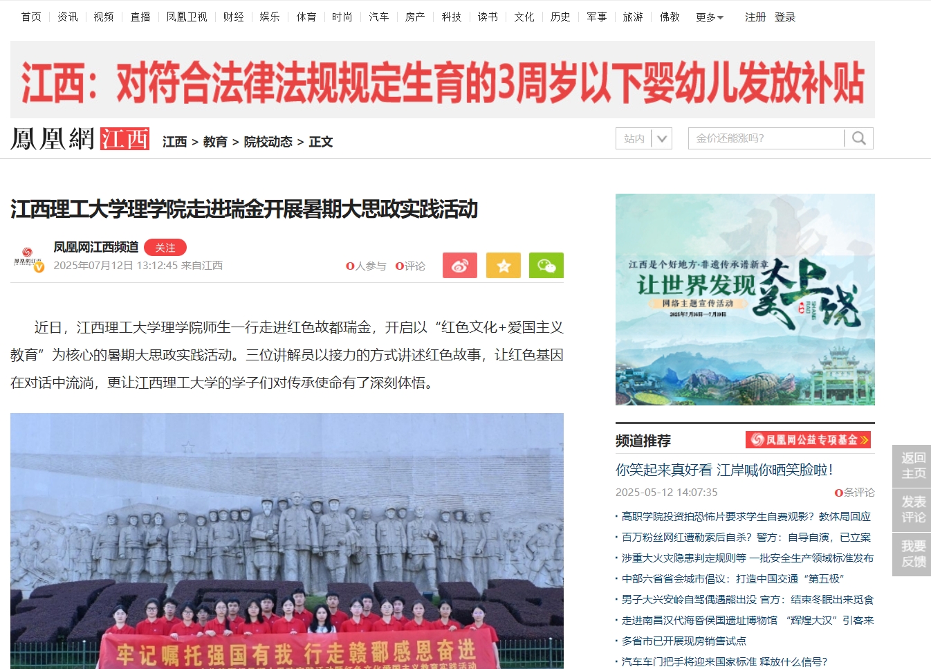 近日,完美网页版理学院师生一行走进红色故都瑞金,开启以“红色文化+爱国主义教育”为核心的暑期大思政实践活动。三位讲解员以接力的方式讲述红色故事,让红色基因在对话中流淌,更让完美网页版的学子们对传承使命有了深刻体悟。
