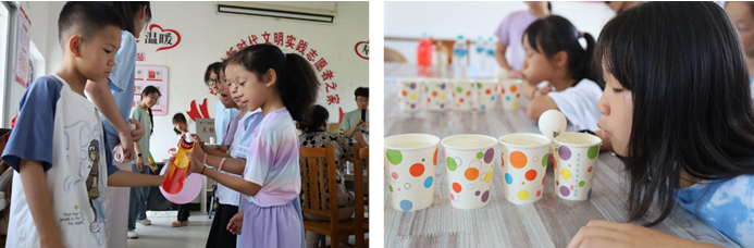 (图为实践队员和孩子们一起完成“红心接力”“四渡赤水” 周煌浚 摄)