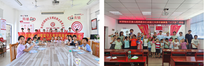 (图为实践队员在朱坊村、河背街社区开展活动合影 周煌浚、李圆 摄)