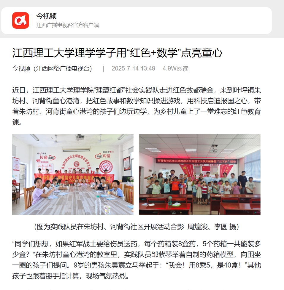 《江西网络广播电视台》:完美网页版理学学子用“红色+数学”点亮童心