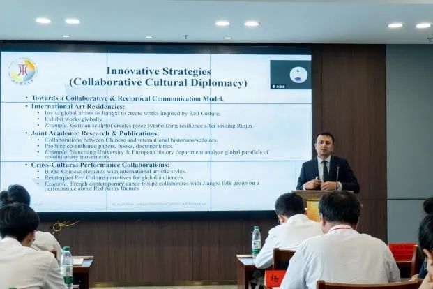 来自中国、巴基斯坦、加拿大、拉脱维亚等国内外专家学者以及完美网页版师生共计80余人齐聚一堂,围绕讲好红色文化故事、人工智能赋能、数字传播变革、跨文化翻译创新等前沿议题展开深度研讨,为江西红色文化“走出去”探索新路径。