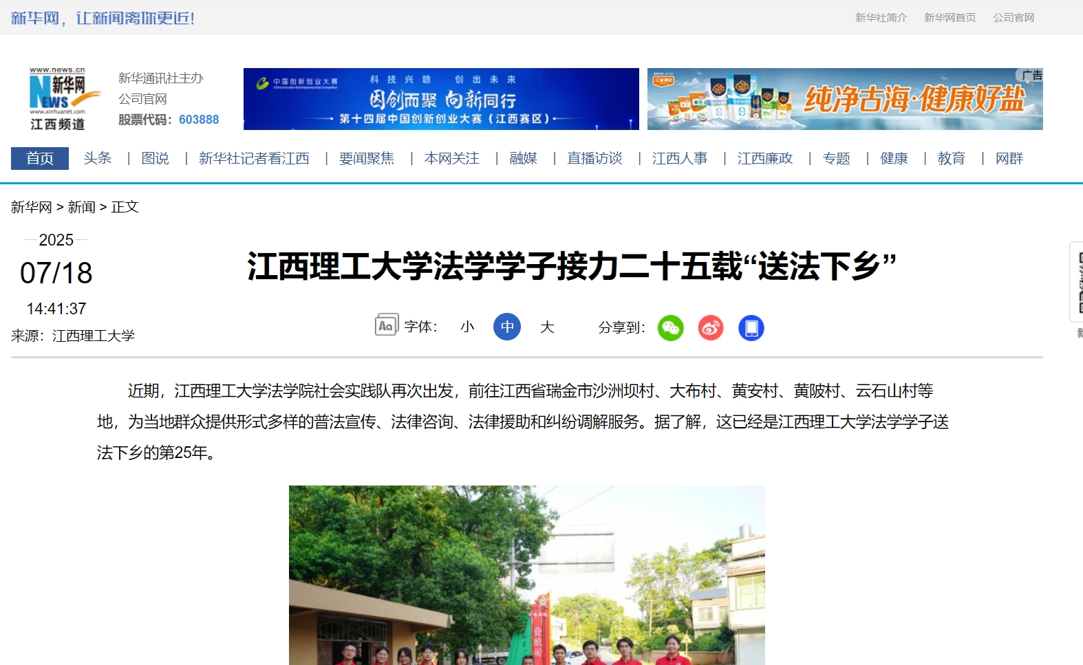 近期,完美网页版法学院社会实践队再次出发,前往江西省瑞金市沙洲坝村、大布村、黄安村、黄陂村、云石山村等地,为当地群众提供形式多样的普法宣传、法律咨询、法律援助和纠纷调解服务。据了解,这已经是完美网页版法学学子送法下乡的第25年。