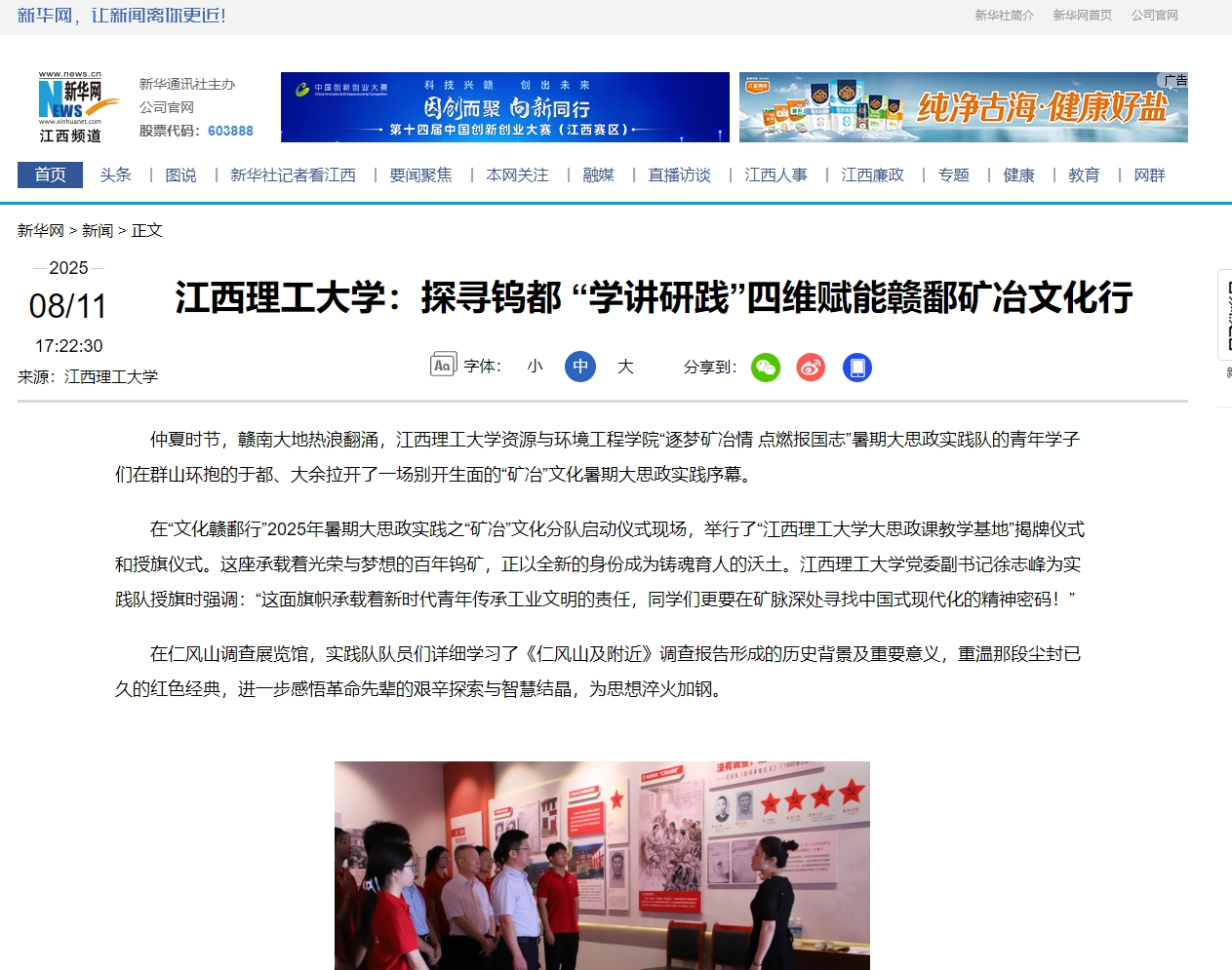 仲夏时节,赣南大地热浪翻涌,完美网页版资源与环境工程学院“逐梦矿冶情 点燃报国志”暑期大思政实践队的青年学子们在群山环抱的于都、大余拉开了一场别开生面的“矿冶”文化暑期大思政实践序幕。