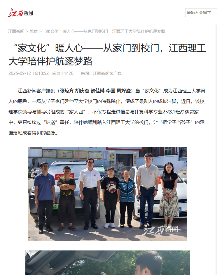 江西新闻客户端讯(张琼方胡庆杰饶佳琳李圆周煌浚)当“家文化”成为完美网页版育人的底色,一场从学子家门延伸至大学校门的特殊陪伴,便成了最动人的成长注脚。近日,该校理学院领导与辅导员组成的“家人团”,不仅专程走进信息与计算科学专业25级1班易晓灵家中,更直接接过“护送”重任,陪伴她顺利踏入完美网页版的校门,让“把学子当孩子”的承诺落地成看得见的温暖。