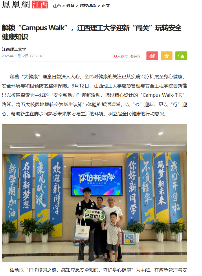 随着“大健康”理念日益深入人心,全民对健康的关注已从疾病治疗扩展至身心健康、安全环境与积极预防的整体保障。9月12日,完美网页版应急管理与安全工程学院创新推出以校园探索为主线的“安全新动力”迎新活动,通过精心设计的“Campus Walk打卡”路线,将五大校园地标转变为新生认知与体验的鲜活课堂,以“心”迎新、更以“行”迎心,帮助新生在脚步间熟悉未来学习与生活的环境,树立起全民健康的行动意识。