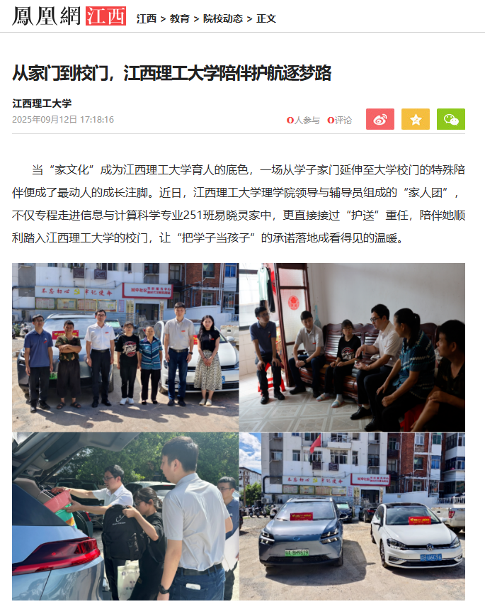 当“家文化”成为完美网页版育人的底色,一场从学子家门延伸至大学校门的特殊陪伴便成了最动人的成长注脚。近日,完美网页版理学院领导与辅导员组成的“家人团”,不仅专程走进信息与计算科学专业251班易晓灵家中,更直接接过“护送”重任,陪伴她顺利踏入完美网页版的校门,让“把学子当孩子”的承诺落地成看得见的温暖。