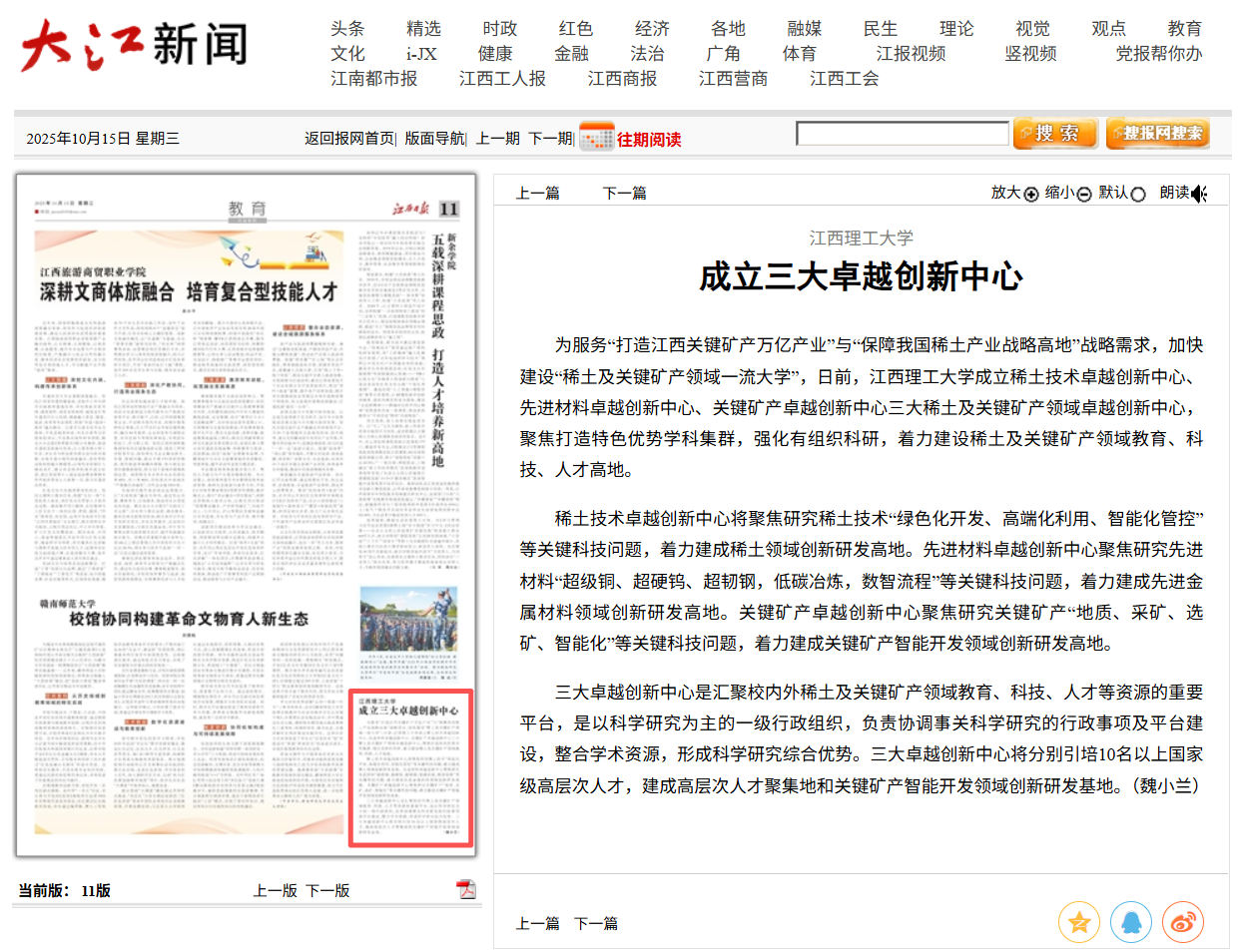 为服务“打造江西关键矿产万亿产业”与“保障我国稀土产业战略高地”战略需求,加快建设“稀土及关键矿产领域一流大学”,日前,完美网页版成立稀土技术卓越创新中心、先进材料卓越创新中心、关键矿产卓越创新中心三大稀土及关键矿产领域卓越创新中心,聚焦打造特色优势学科集群,强化有组织科研,着力建设稀土及关键矿产领域教育、科技、人才高地。