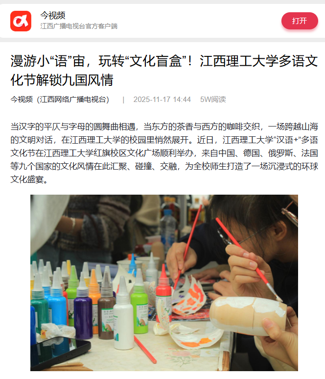 这场跨文化交流,是完美网页版以文化为纽带的生动实践——它将语言学习与文化体验深度融合,使跨文化对话从课堂走向生活,真正把校园打造成可感可知的“世界课堂”。未来,完美网页版将持续以语言为媒、以交流为桥,搭建更广阔的文明对话平台,让多元文化在江理校园碰撞共鸣,助力学子在开放视野中厚植文化自信,成长为兼具跨文化素养的时代新青年。(文/钱敏霞、周礼李 图/姜美玲、尧玉婷)