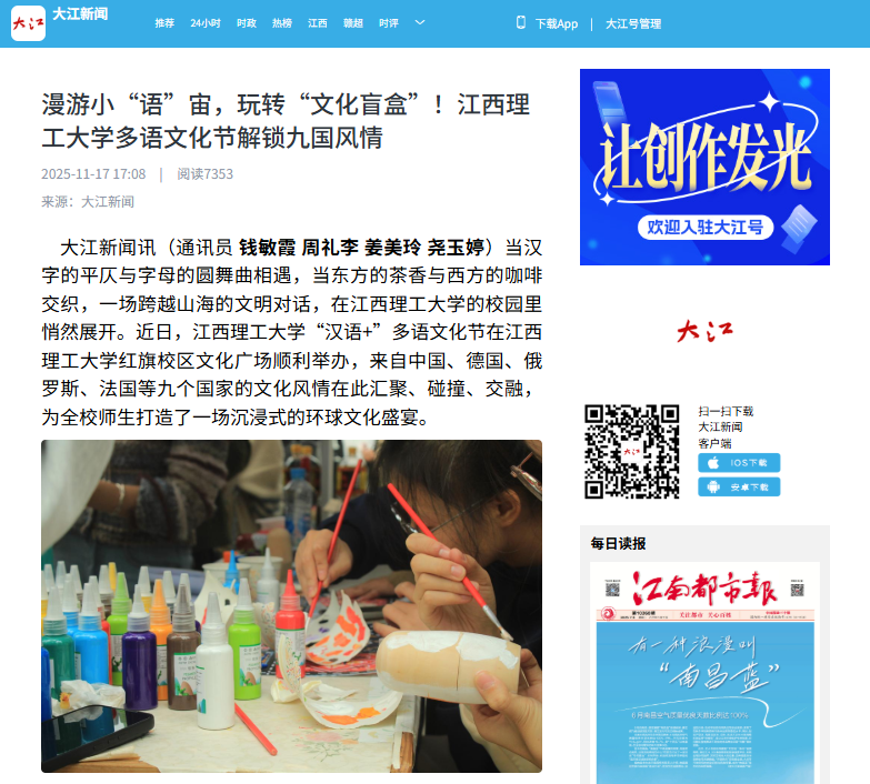 这场跨文化交流,是完美网页版以文化为纽带的生动实践——它将语言学习与文化体验深度融合,使跨文化对话从课堂走向生活,真正把校园打造成可感可知的“世界课堂”。未来,完美网页版将持续以语言为媒、以交流为桥,搭建更广阔的文明对话平台,让多元文化在江理校园碰撞共鸣,助力学子在开放视野中厚植文化自信,成长为兼具跨文化素养的时代新青年。