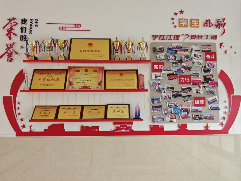 学院着力打造宜居宜学的社区环境,为学生身心健康保驾护航。社区南侧三楼围绕学校稀土优势专业,展示稀土元素发现历程与应用领域,将专业科普与生态保护理念相结合;同时聚焦港珠澳大桥、三峡大坝、北斗卫星等大国基建与国之重器,展现工程建设中的生态环保理念与绿色发展成果,让学生感受专业发展与生态文明建设的协同共生。