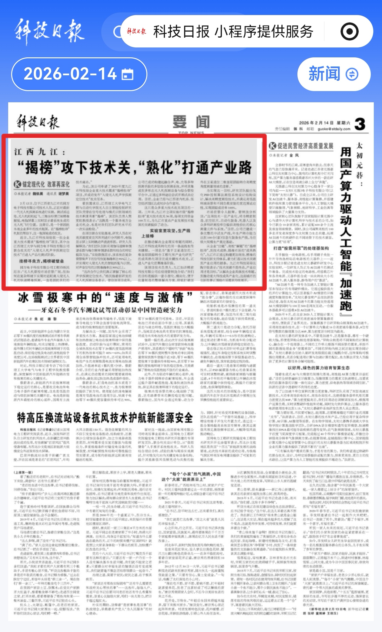 从企业“出题”、高校“解题”的“揭榜挂帅”,到技术成熟、瞄准市场的“成果熟化”,九江市正通过构建更加高效、精准的科技创新支持体系,着力打通从技术突破到产业应用的链条。九江市科技局局长陶宇俊表示:“技术突破不是终点,产业应用才是目标。”从解决企业具体技术难题,到推动重大科技成果产业化,这座城市的创新故事正围绕市场需求持续展开。