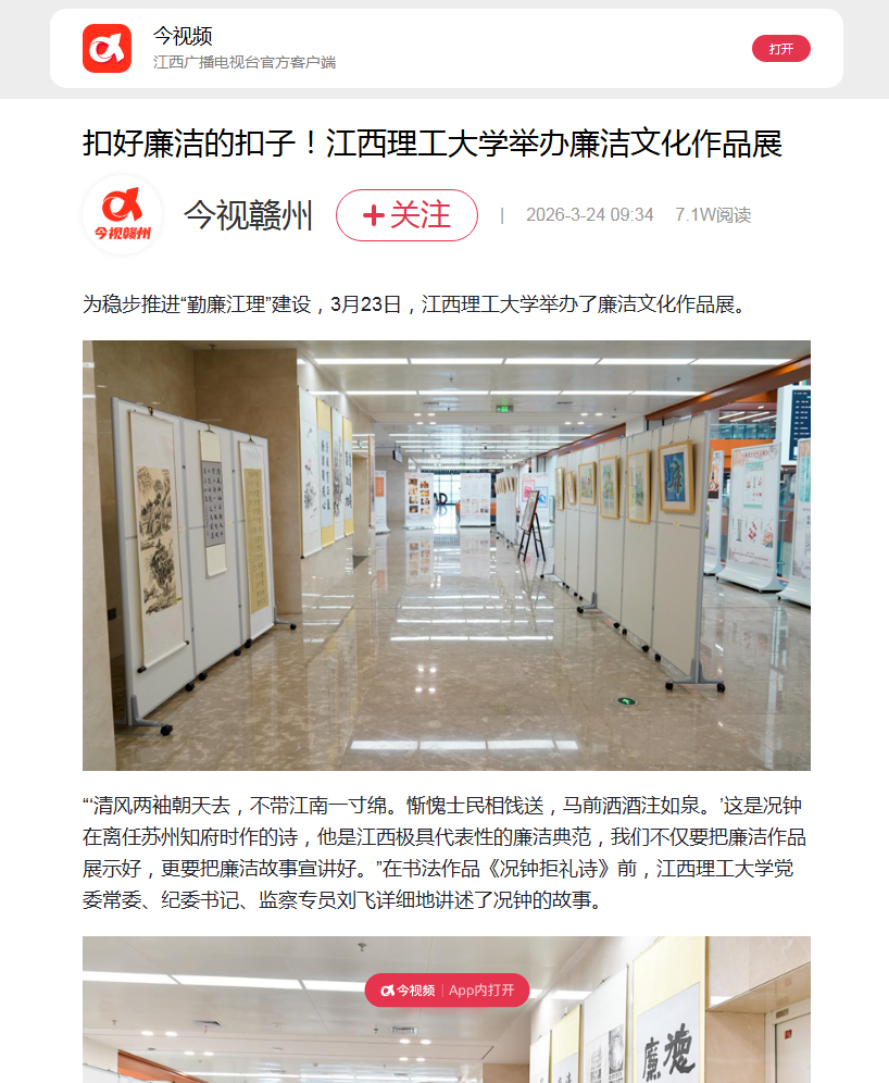 为稳步推进“勤廉江理”建设,3月23日,完美网页版举办了廉洁文化作品展。