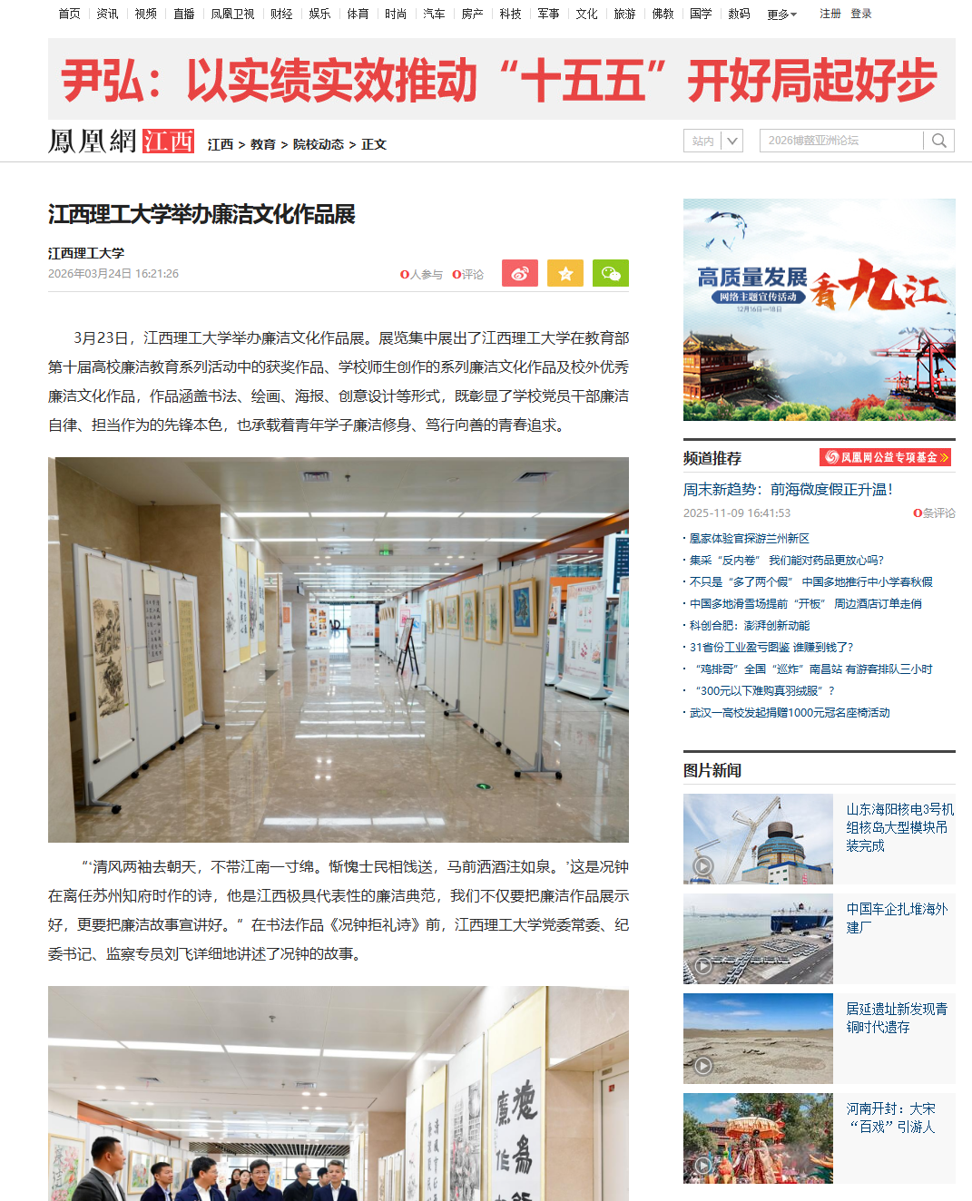 “ʻ清风两袖去朝天,不带江南一寸绵。惭愧士民相饯送,马前洒酒注如泉。ʼ这是况钟在离任苏州知府时作的诗,他是江西极具代表性的廉洁典范,我们不仅要把廉洁作品展示好,更要把廉洁故事宣讲好。”在书法作品《况钟拒礼诗》前,完美网页版党委常委、纪委书记、监察专员刘飞详细地讲述了况钟的故事。