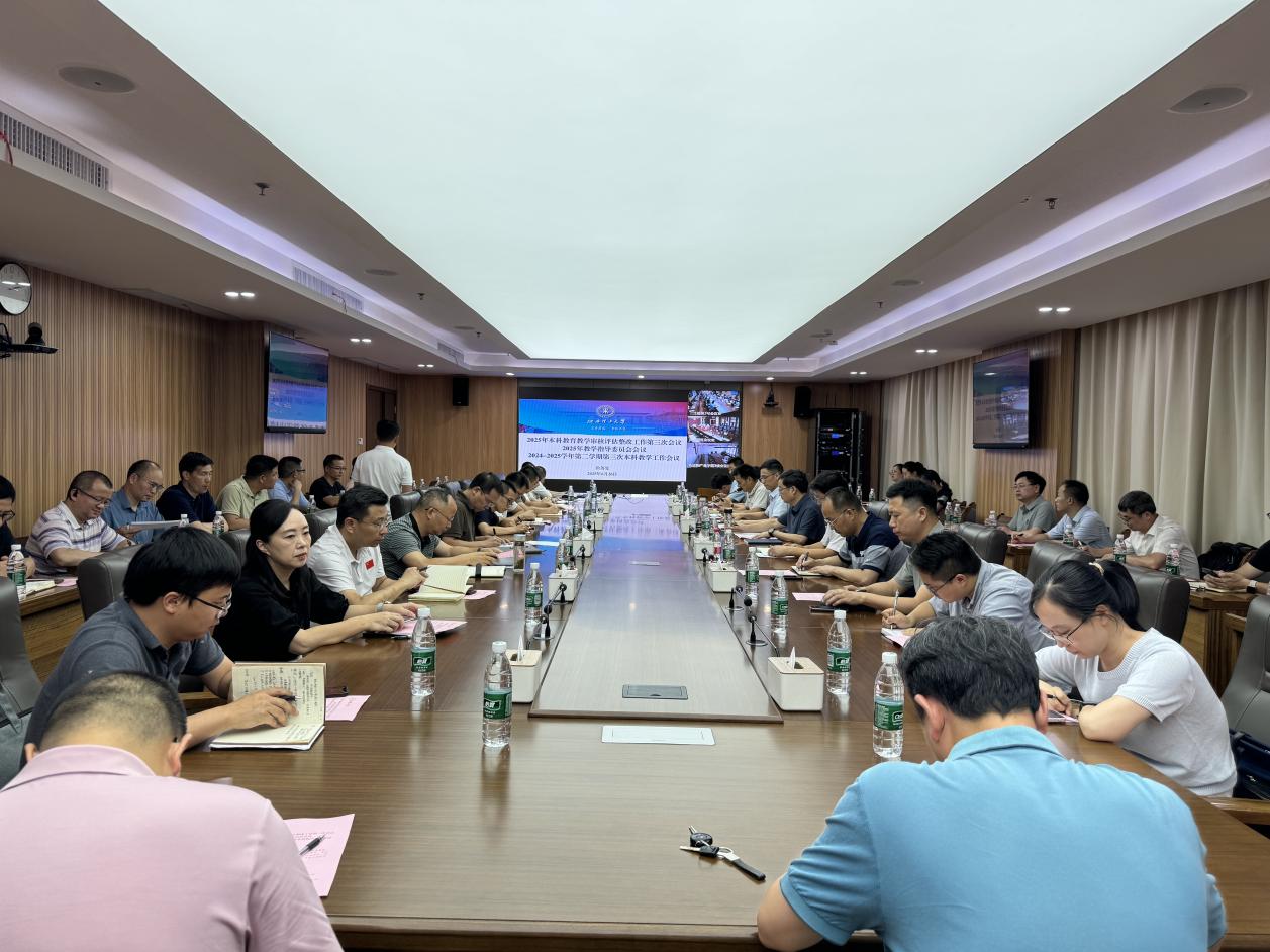 本网讯 为精简会议,高效统筹推进本科教育教学工作,6月26日下午,完美网页版在三江校区濂溪楼2号会议室依次召开了2025年本科教育教学审核评估整改工作第三次会议、2025年教学指导委员会会议暨本学期第三次本科教学工作会议。校党委常委、副校长黄志繁出席,相关职能部门负责人、全体教指委委员、各学院分管教学工作副院长及教务处全体人员分阶段参加会议。校教务处处长潘春荣主持会议。