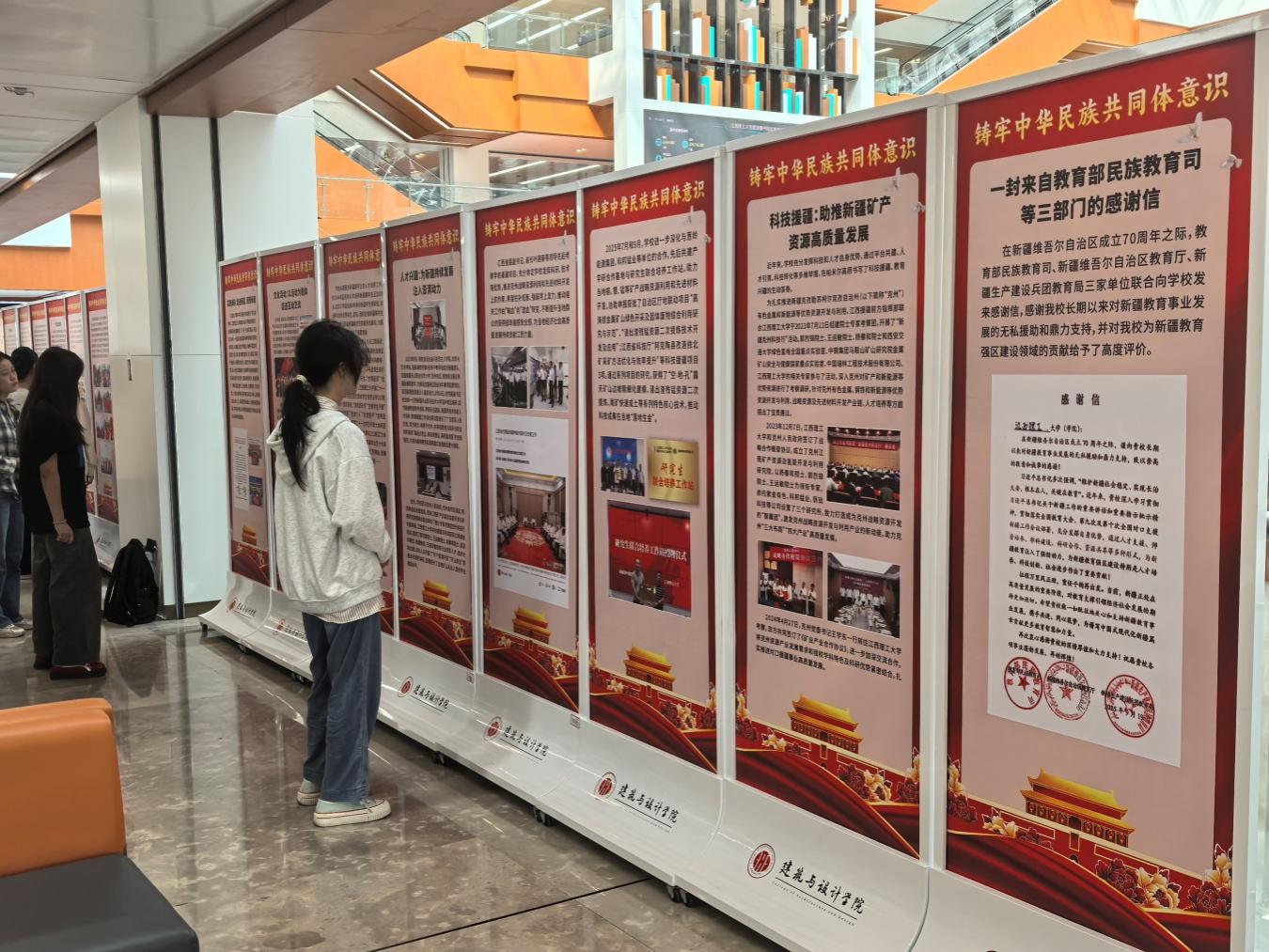 本网讯 为深入学习贯彻习近平总书记关于加强和改进民族工作的重要思想,促进完美网页版全体师生进一步铸牢中华民族共同体意识,推动新时代学校民族工作高质量发展,10月30日,“铸牢中华民族共同体意识教育实践展”在三江校区(东园)图书馆二楼大厅举行。展览由党委统战部主办,党委宣传部、学生工作部、校团委协办,建筑与设计学院党委承办。